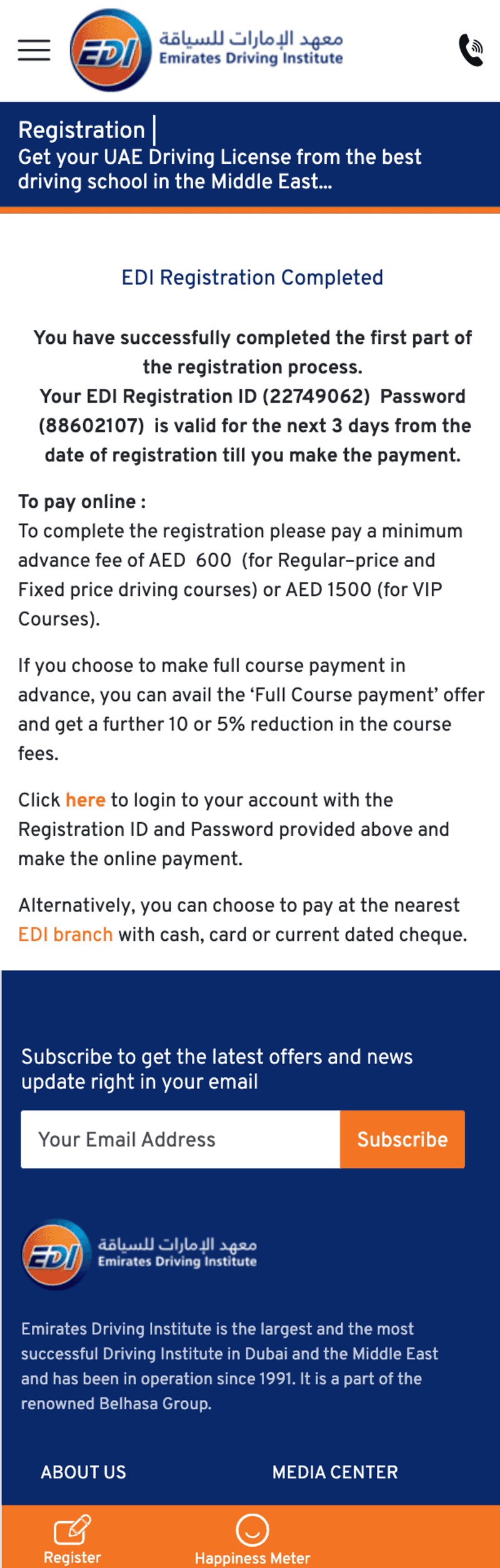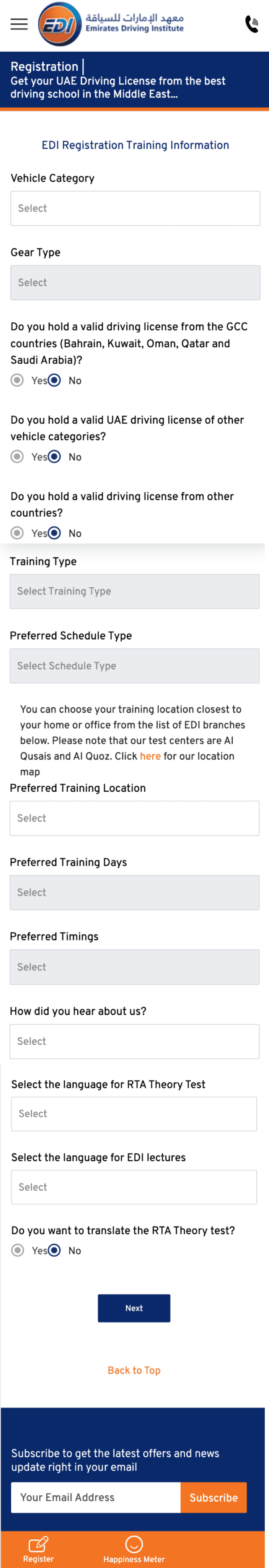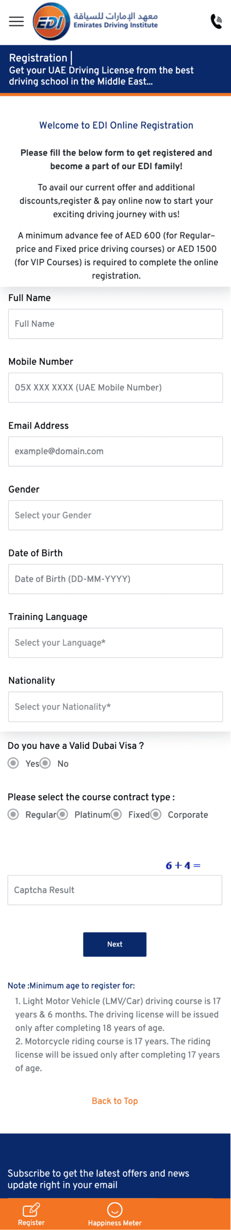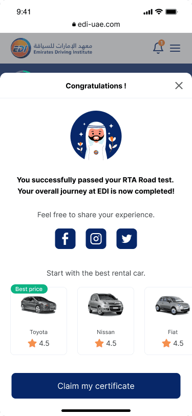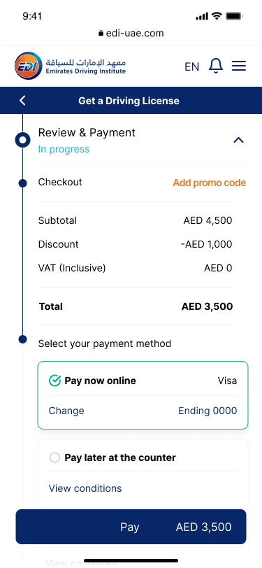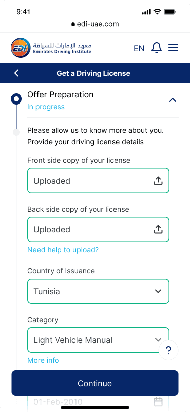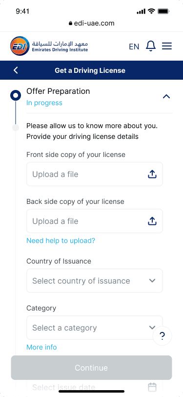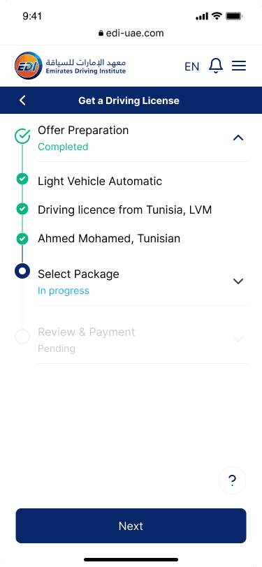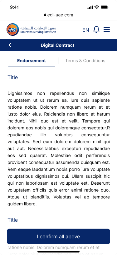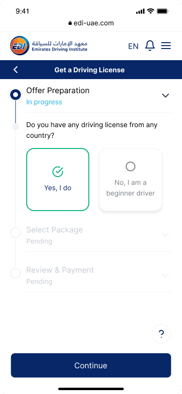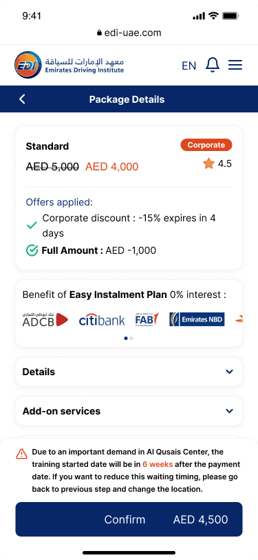 Emirates Driving Institute (EDI) is one of the largest driving schools in the UAE. Their existing registration process was outdated, complex, and heavily dependent on their customer care center.