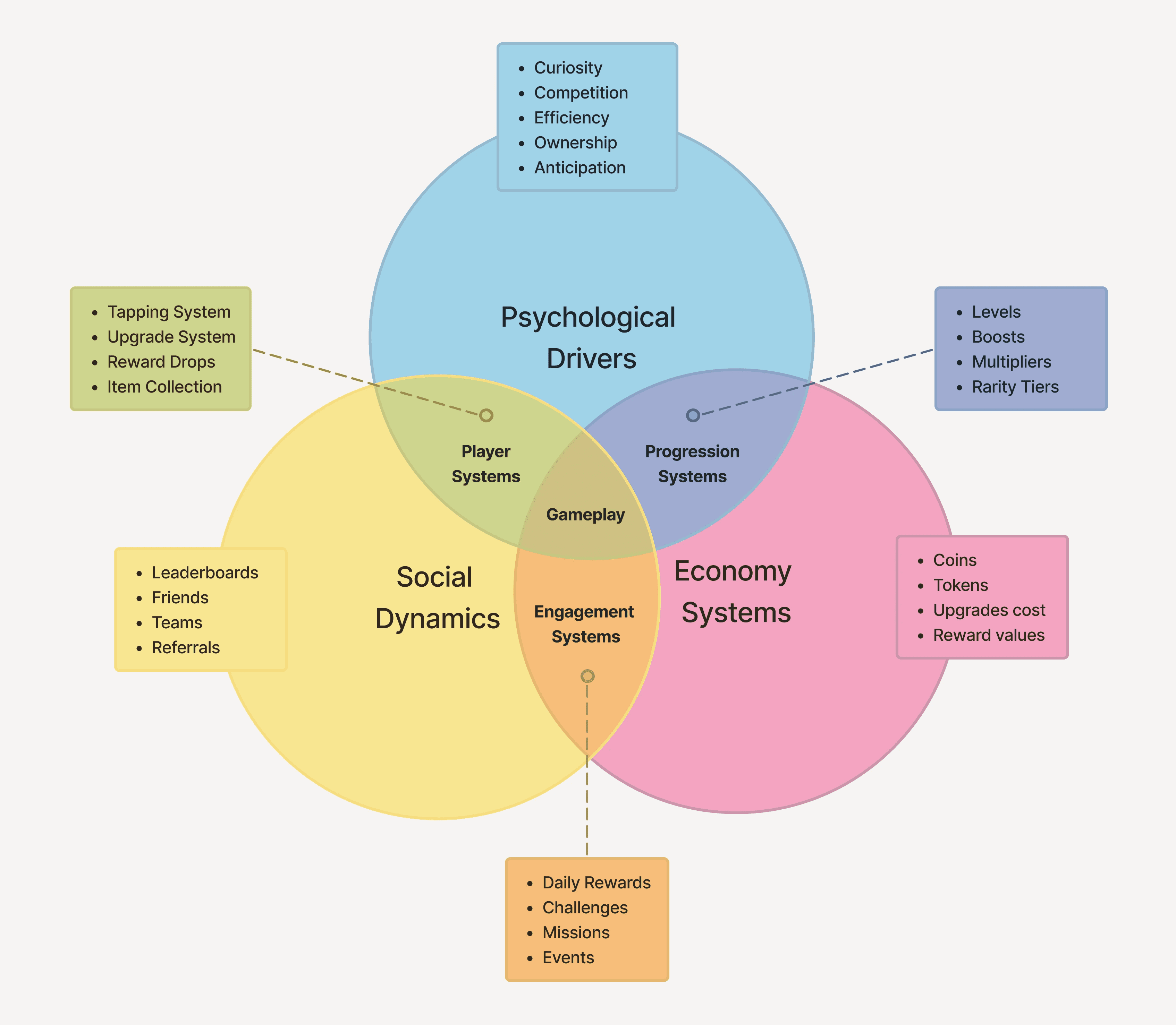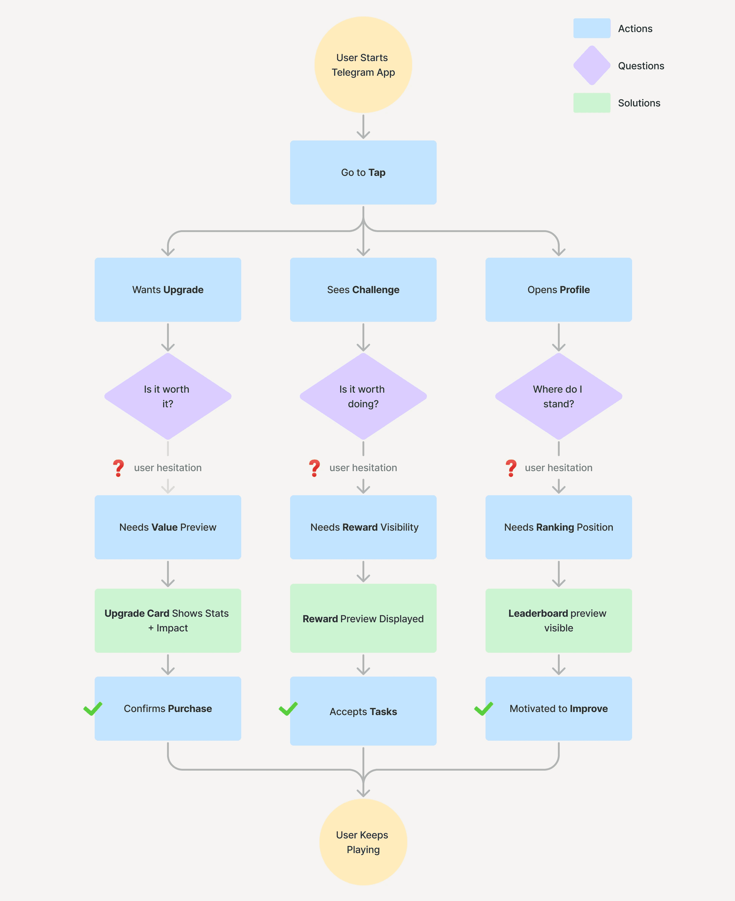 To understand how players interact with tap-to-earn games, I analyzed several existing Telegram mini-apps and casual tap games. The goal was to identify usability patterns and product opportunities.